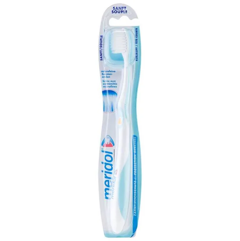 Die Meridol Zahnfleisch sanft Zahnbürste punktet mit pinselartigen, mikrofeinen Borstenenden, die Speisereste und Plaque gründlich von der Oberfläche der Zähne bis hin zum Zahnfleischsaum entfernen. Der kleine Bürstenkopf der Meridol Zahnfleisch sanft Zahnbürste ist weich ummantelt, damit Sie problemlos auch in die hintersten Ecken Ihres Mundraums gelangen, ohne wundes Zahnfleisch weiter zu reizen.